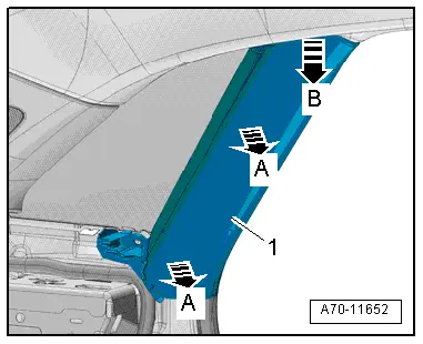- Remove the cover -1- from the C-pillar trim and the D-pillar trim -arrows-.