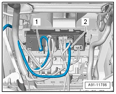 - Remove the center console storage compartment. Refer to → Body Interior; Rep. Gr.68; Center Console; Front Center Console Storage Compartment, Removing and Installing.