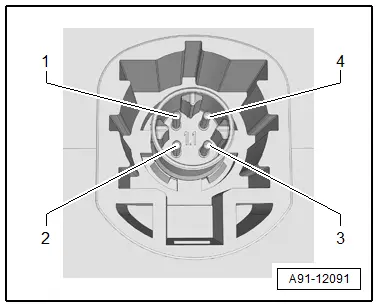 6 - 4-Pin Connector -T4ap- to the External Audio Source Connection -R199-/Internet Access Control Module -J666-, only with MOST