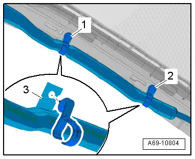 - Clip the clips -1 and 2- with the tab -3- for the head curtain airbag in the body.