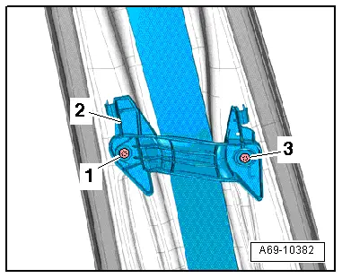 - Insert the three-point seat belt with the anti-twist mechanism and bolt -2- into the mount -3-.