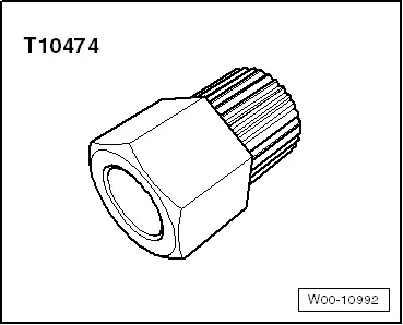 - Install the Multi-Tooth Adapter -T10474- or Multi-Tooth Adapter -3400--1- in the belt pulley and attach a wrench.